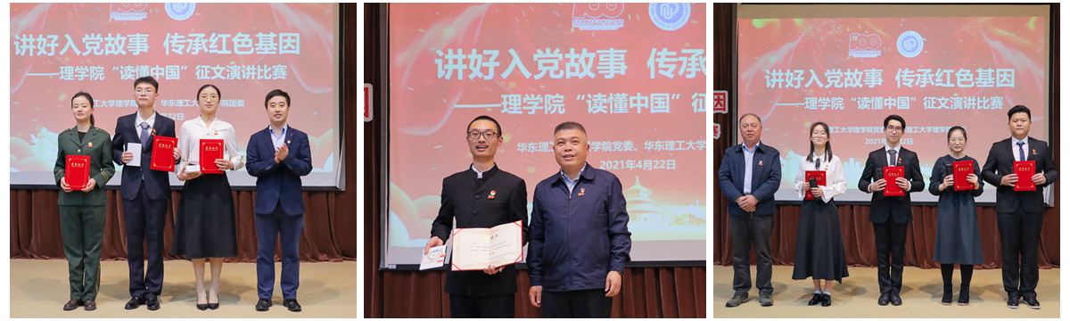 为庆祝中国共产党成立100周年,进一步加强党史学习教育,继承优良传统,赓续红色基因,4月22日,理学院在奉贤校区敬贤堂举办“讲好入党故事,传承红色基因”——“读懂中国”征文演讲比赛主题团日活动。副校长李涛、校团委书记侯宇、理学院党委书记童之敏、党委副书记王莉、团委书记李莹、青年教师代表、各年级辅导员及各团支部学生代表参加了本次活动。