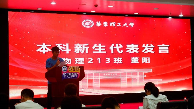 “时代的命运取决于年轻人崇高而奔放的激情。”董阳同学借用了恩格斯的一句名言以此提倡全体新生珍惜时间,牢记使命,刻苦学习,博览群书更好的展现我们华理学子的风采。