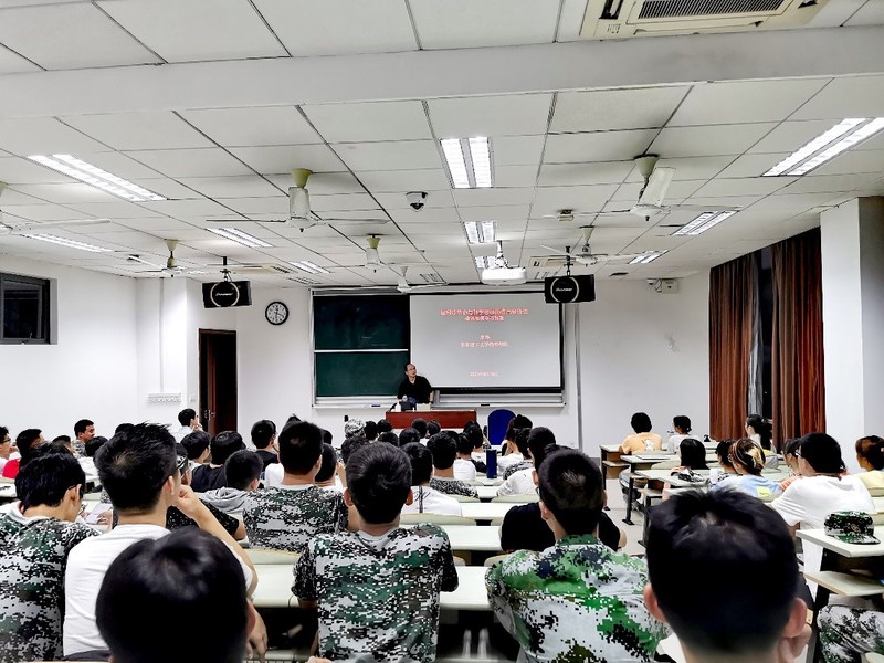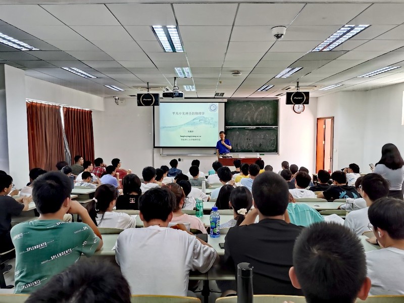龚尚庆教授从国内外重点关注讲起了量子科技,用生动幽默的语言向新生讲述了量子光学的概念与量子科技的应用。“有序水的应用——亲水表面上的减阻。”方海平教授从滴到桌面上的水开始展开了一场科学报告 ,由浅入深地将平凡中常见的现象演绎到深奥的物理学。