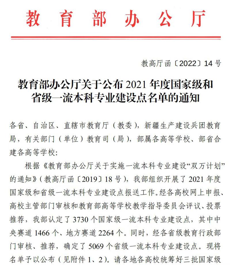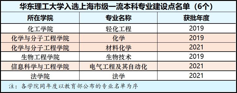 近日,教育部发布了《教育部办公厅关于公布2021年度国家级和省级一流本科专业建设点名单的通知》(教高厅函〔2022〕14号),华东理工大学15个专业获批2021年度国家级一流本科专业建设点,同时新增3个上海市级一流本科专业建设点。