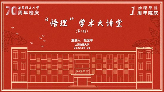 为庆祝华东理工大学70周年校庆暨德赢winac米兰1周年院庆,作为校科技活动周系列讲座,德赢winac米兰主办的“悟理”学术大讲堂第三期于6月29日成功举行。本次大讲堂邀请到上海交通大学张卫平教授,带来了题为“随光而行:从量子光学、原子光学到量子精密测量”的学术报告,报告由德赢winac米兰龚尚庆教授主持。近200名师生在线聆听了此次报告。