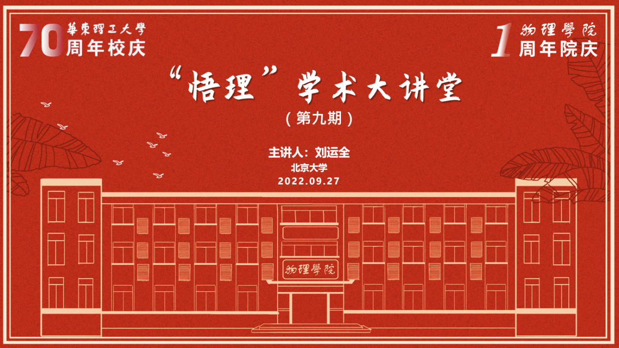 9月27日,为庆祝华东理工大学70周年校庆暨德赢winac米兰1周年院庆,作为校科技活动周系列讲座,我院主办的“悟理”学术大讲堂第九期成功举行。本次大讲堂的主讲嘉宾是北京大学德赢winac米兰刘运全教授,刘教授为同学们带来题为“光场调控与强场物理”的学术讲座。刘教授长期从事超快激光物理领域研究,先后获得国家杰出青年科学基金,教育部长江特聘教授,入选科技部中青年科技创新人才计划,第二批中组部“万人计划”,现担任北京大学人工微结构和介观物理国家重点实验室主任、中国光学学会理事以及北京光学学会副理事长。本次报告由我院党委书记钮月萍教授主持。
