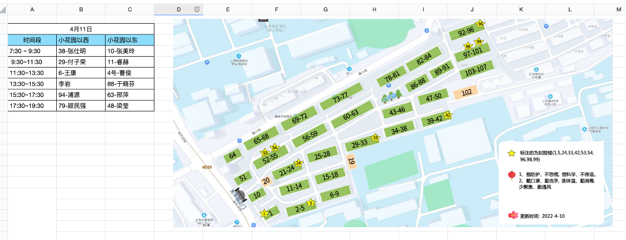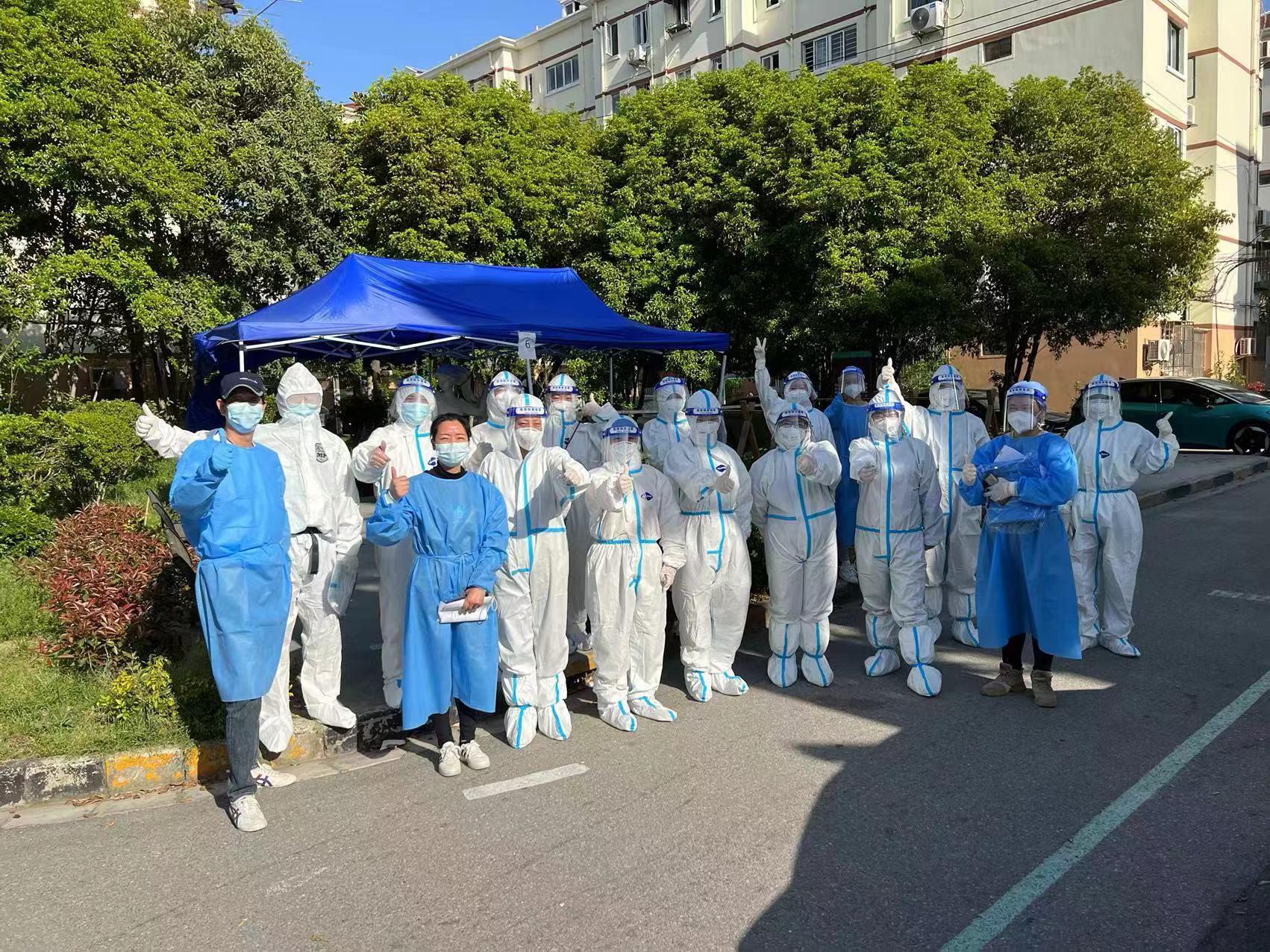 4月9日核酸采样前的志愿者与居委同志的合影,左二为杨一舟
