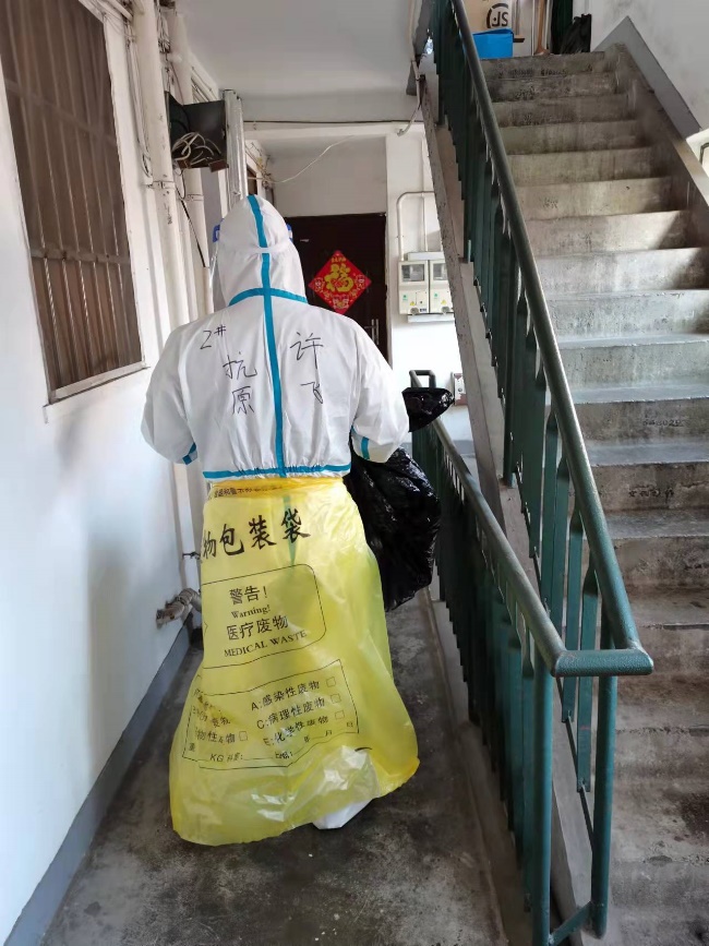 在社区进行封闭管理后,德赢winac米兰党员马剑剑老师作为一名党员,第一时间响应号召报名成为楼栋志愿者。在核酸检测期间,负责协调所在楼栋居民有序排队、帮助老年人信息登记;抗原自测期间,指导居民自测和收集上报结果。“足不出户”之后,利用工作之余的时间,每天固定早八点统计居民物资、配药需求上报;晚八点完成楼道垃圾收集,消杀工作。她表示,希望通过自己的志愿服务能为身边的群众增强信心,全力支持疫情防控工作,营造良好的社区疫情防控氛围。
