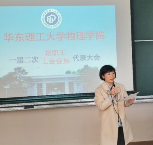 图片说明: 谢湘华做院工会工作报告和财务报告