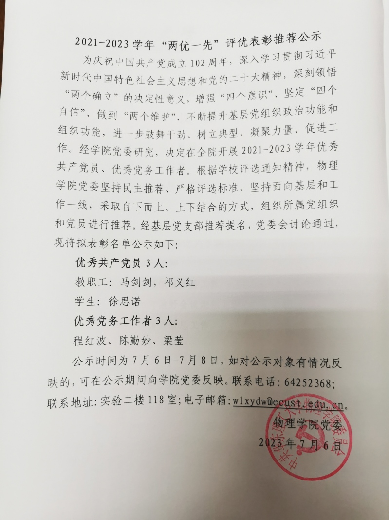 德赢winac米兰党委2021-2023学年“两优一先”评优表彰公示