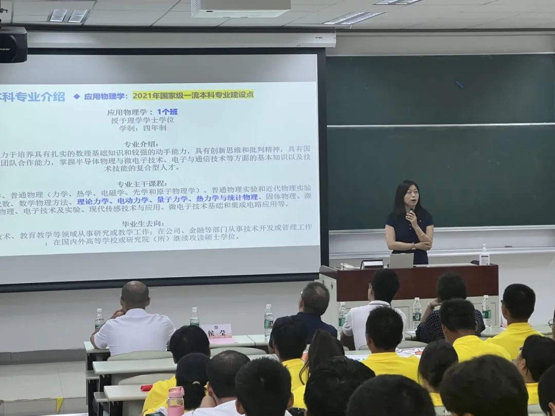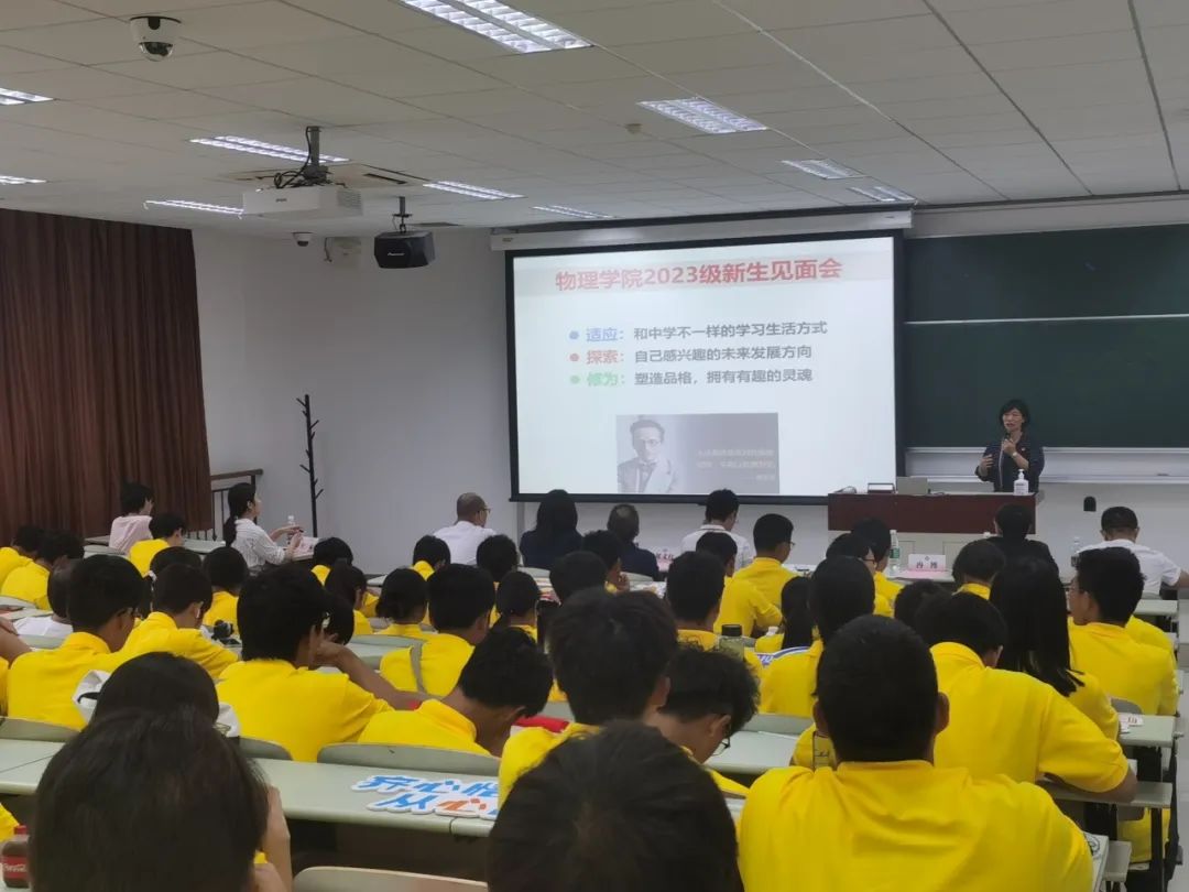 党委书记钮月萍首先向所有报到新生表示热烈的祝贺,随后给新同学介绍了德赢winac米兰的基本情况,包括学科方向、师资队伍、课程资源、教学成果、科研团队、科创活动及学生培养情况等各个方面。学院全方位的展示不仅让新生加深了对学院的了解,更让在场的每一位同学为选择德赢winac米兰而感到自豪,也对物理专业学习充满了热情。