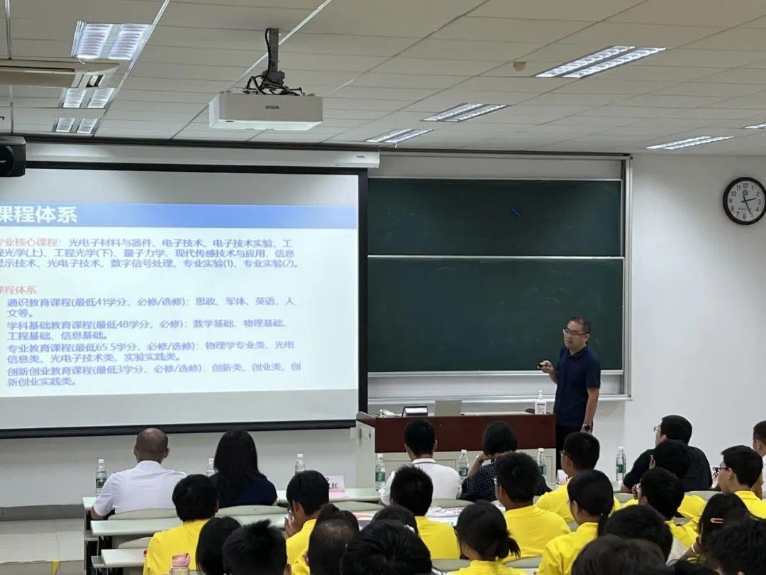 光电信息科学与工程系主任祁义红和应用物理系主任侯莹随后对光电信息科学与工程专业以及应用物理学专业的本科生培养工作分别做了详细的介绍,从专业概况、培养要求、课程体系、学生深造及就业等多个方向,向2023级新生展示了德赢winac米兰的专业建设,鼓励同学们要积极尝试,勇于探索,找到科学的学习方法,找到个人的兴趣所长,未来必将乘风破浪,大有可为。