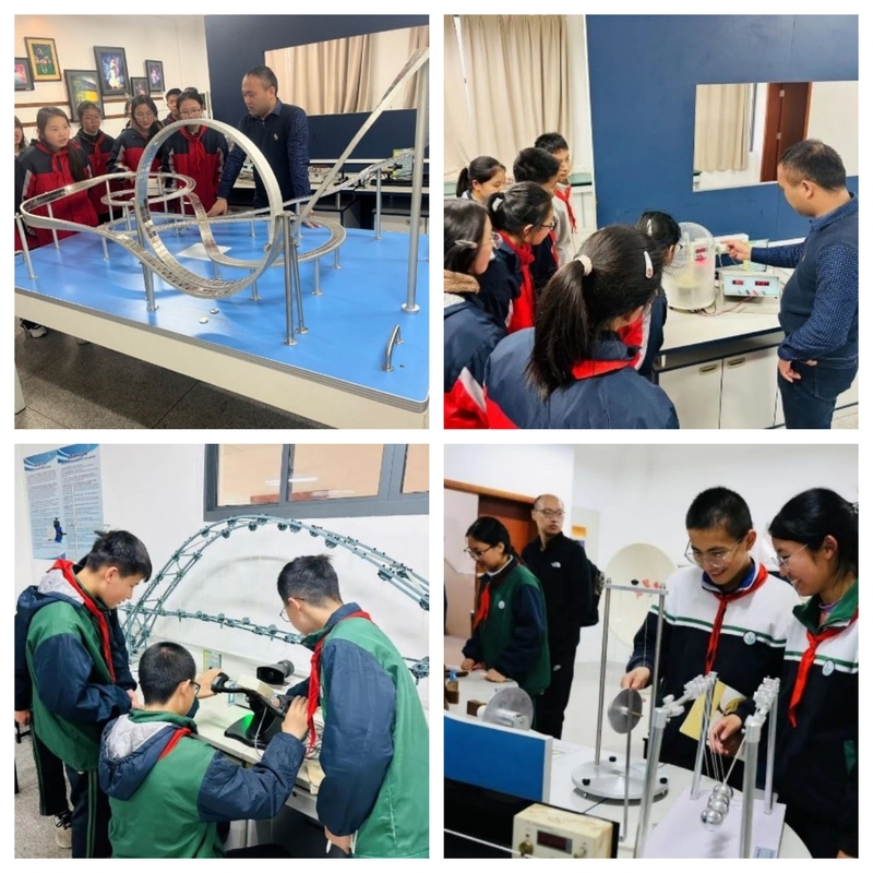 最后,学生们参观了物理演示厅,通过浸入式体验,观察了如磁悬浮、桥梁共振、人体反应时间测试、麦克斯韦滚摆、彩色影子、热声效应等有趣的物理现象,深化了对生活中常见科学现象的理解,更直观地体验到物理科学实验的严谨性。学生们还积极提出问题,与老师们进行了深入的互动交流。