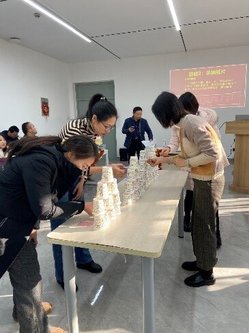 之后是各种集体游戏,老师们纷纷加入,各显身手,现场气氛一路高涨,特别是抢水瓶游戏中出现了喜剧性场面,胜者出现一边倒,全部由东边的老师抢到,难道真有主场、客场的魔咒?!