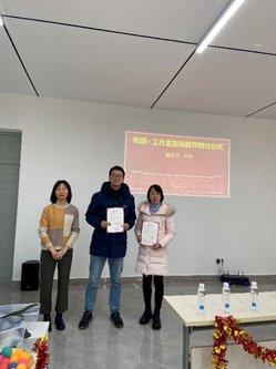 今天,物理+工作室又迎来了2位新的导师:路明、张红雨,一位是上海作协作家,一位是学校书法协会会长,看来德赢winac米兰的学子们除了专业知识的提升之外,来年在文学、艺术方面也将收获多多!院党委副书记冉博为他们颁发了荣誉聘书。