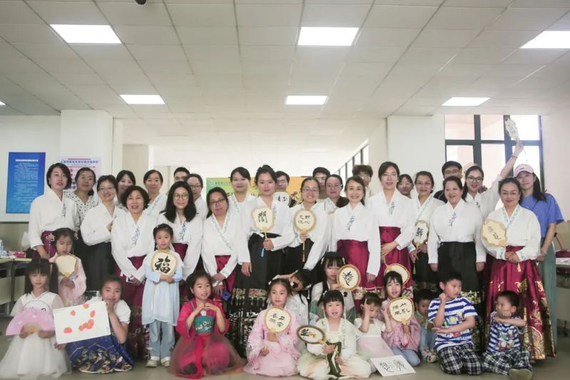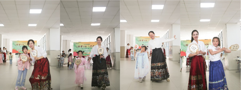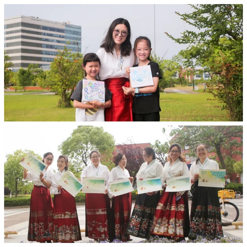 此外,还组织了亲子汉服走秀活动,穿着华丽的汉服,搭配上古代配饰,一同走上“T型台”,展现汉服的优雅和韵味,呈现出了家庭和睦、文化传承的美好画面。活动最后,大家身着汉服,在奉贤校区的美丽景点合影留念。