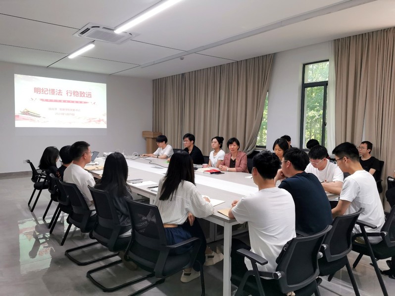 为深入学习贯彻习近平总书记关于党纪学习教育的重要讲话和重要指示批示精神,推动广大党员将学习《中国共产党纪律处分条例》走深走实,认真做好2024年毕业生党员离校集中党性教育,5月29日,德赢winac米兰党委书记钮月萍为徐汇学生党支部讲授《明纪懂法 行稳致远》的党纪学习教育专题党课。党委副书记冉博,辅导员杨少明、何宇瑶一起参加了学习。会议由徐汇学生党支部书记战一帆主持。