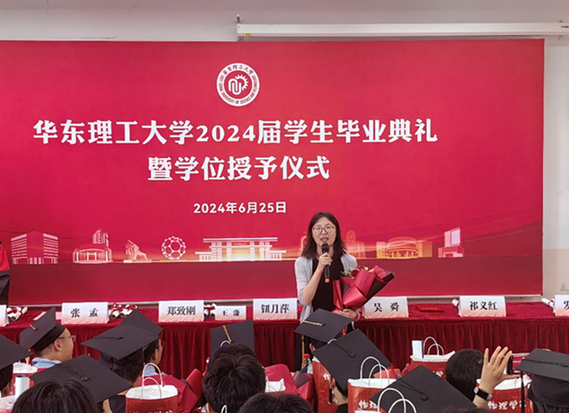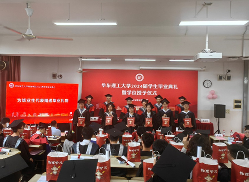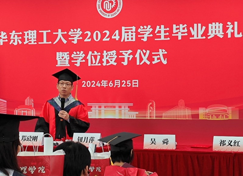 6月25日,德赢winac米兰2024届学生毕业典礼暨学位授予仪式在七教210教室举行。华东理工大学党委副书记沈海涛,德赢winac米兰党委书记钮月萍、院长郑致刚、院党委副书记兼纪委书记吴舜、院党委副书记冉博、副院长张孟、光电信息科学与工程系主任祁义红、班导师许飞、教师代表王潇、辅导员何宇瑶、杨少明及2024届全体毕业生出席。同时到场的还有学生家长们,同学们取得的成绩离不开他们二十载的悉心教育与陪伴,这一刻,家长将和同学们一起翻开人生下一个精彩篇章。典礼由学院党委副书记冉博主持。