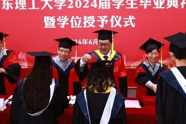 学院党委书记钮月萍宣读了德赢winac米兰2024届毕业生学位授予决定。随后校党委副书记沈海涛,德赢winac米兰党委书记钮月萍、院长郑致刚、院党委副书记兼纪委书记吴舜、院党委副书记冉博、副院长张孟、光电系主任祁义红等共同为到场毕业生拨穗正冠并赠送毕业卷轴,祝愿青年学子从此鹏程万里、前程似锦。
