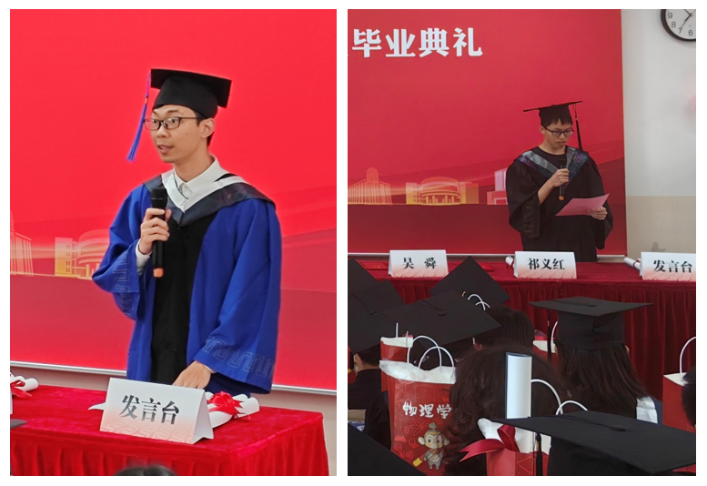 院长郑致刚致辞,向2024届毕业生提出了三点期望:一是改掉自己一些不好的习惯。没有了学院老师的监督和敦促,希望今后同学们靠自己不断改掉坏习惯,培养好习惯;二是努力的去培养自己的自学能力。自学能力对今后的事业发展尤其重要,无论是知识还是做人,自学能力的增强是一个不断复盘、蜕变、成长的过程,希望同学们直面对待。三是学院永远是大家坚强的后盾。工作之后一定会碰到困难,人生的道路不会永远是坦途,直面困难需要勇气,挑战困难离不开坚韧,但跨越过去便是成长与历练。物理人永远披荆斩棘乘风破浪,栉风沐雨不改从容!