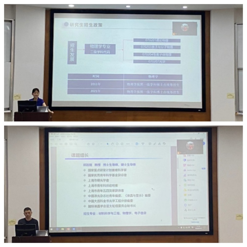 江散老师向同学们介绍了研究生招生政策、奖助体系、就业前景以及学院各大课题组的科研方向。王骁乾老师等分别介绍了各自课题组的情况,包括课题组成员、研究方向、研究目标、科研成果及历届研究生毕业去向等信息。