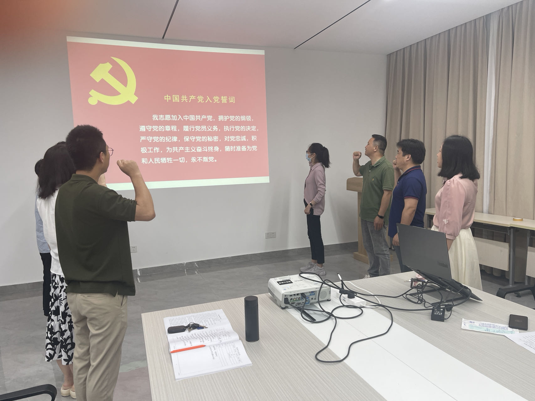 此外,还为6、7月份入党的梁莹、陈勤妙、顾晓艳等六位老师举办了集体“政治生日”活动,与党共同过生日的党员们深情朗读了诗歌《我是共产党员》,表达自己立足岗位做贡献、创先争优当先锋的责任和担当,展现了作为一名中国共产党党员的骄傲与自豪;随后全体党员面向鲜红的党旗集体宣誓,再次接受入党誓词的洗礼,进一步坚定理想信念,不忘入党的初心使命。