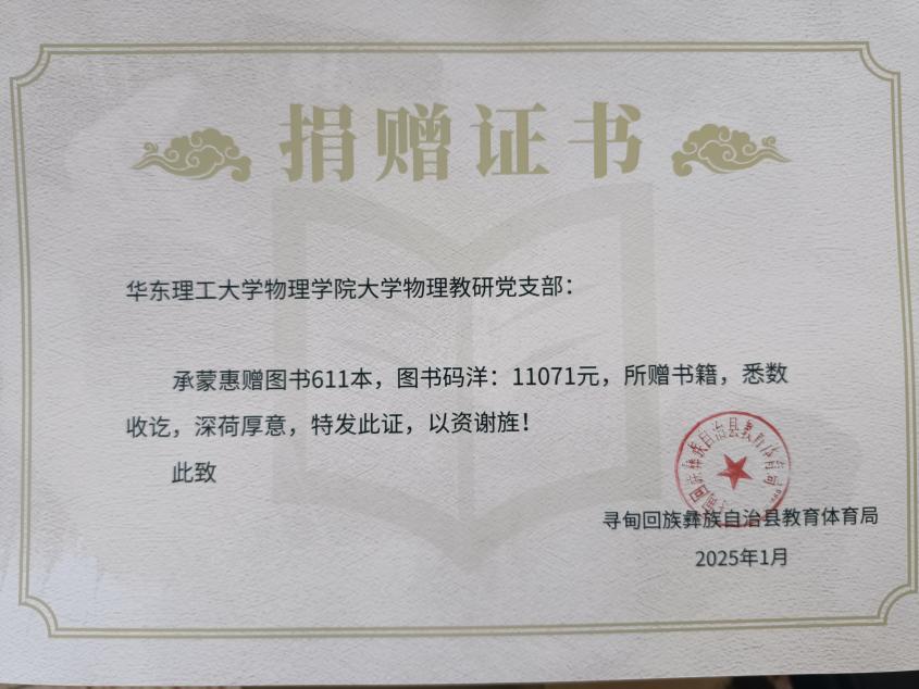 为深入学习贯彻党的二十届三中全会精神,大学物理教研党支部和华东理工大学出版社党支部进行党建共建,积极组织爱心捐书活动,为云南寻甸回族彝族自治县的孩子送去科学与梦想。会议由出版社党支部副书记(主持工作)、社长助理王洋洋主持,大学物理教研党支部书记赵丽霞,支部成员、副院长张孟等两支部党员共同参加。