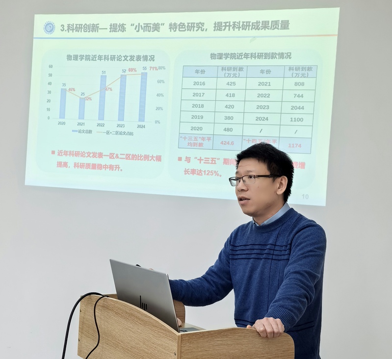 大会开幕,全体起立奏唱国歌,双代会正式开始。首先,院长郑致刚代表学院党政作行政工作报告。报告回顾了24年相关工作,2024年是深入实施党的二十大战略部署的关键之年,是“十四五”规划目标任务全面落地的重要一年。德赢winac米兰党政班子带领全体教职工团结协作、开拓创新,围绕立德树人根本任务,积极推进学院各项事业稳步发展。报告也展望了2025年重点工作,2025年德赢winac米兰将坚持深入学习贯彻习近平新时代中国特色社会主义思想,全面加强理论武装,贯彻落实党的二十大、二十届三中全会精神和习近平总书记关于教育、科技、人才的重要论述、指示批示精神,落实全国教育工作会议及德赢第十二次代表大会精神,聚焦物理实践育人与创新人才培养,全面提升学院办学水平,促进立德树人和人才培养水平上新台阶。