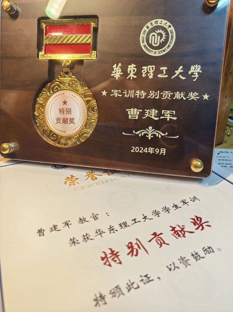 返校后,曹建军化军魂为剑,继续为国防事业不断冲锋。他多次参与华东理工大学新生军训和上海中学新生军训等国防教育任务,获得了华东理工大学“军训特别贡献奖”。此外,他还担任学校国旗护卫队骨干,组织并参与执行10余次大型活动的升旗仪式。